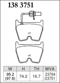 Таблица совместимолсти для Dixcel RE type 138 3751 с двумя датчиками износа колодок