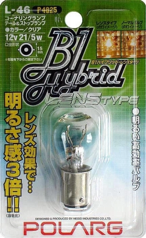 Лампы "B1 Hybrid Lens Type " изготовлены по уникальной технологии, разработанной специалистами Polarg. В верхней части лампы имеется собирающая линза. За счет этого лампы освещают в 3-5 раз лучше (в диапазоне более 10 градусов) по сравнению со стандартными. "B1 Hybrid Lens Type " гарантируют лучшую видимость, позволяют разглядеть впереди и позади идущие автомобили, и безопасность на дороге даже в ночное время суток.
