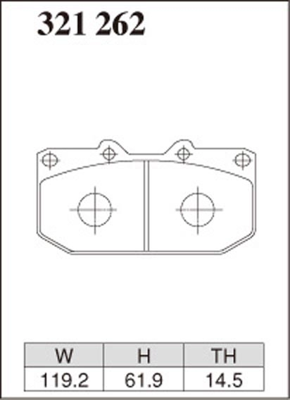 Внимание! Колодки 321262 колодки похожи по форме площадки на 361074 (Subaru) однако конфигурация рабочей части отличается. Рабочая высота у 321262 на 5мм больше чему 361074. Эти площадки не взаимозаменяемы! Будьте внимательны!