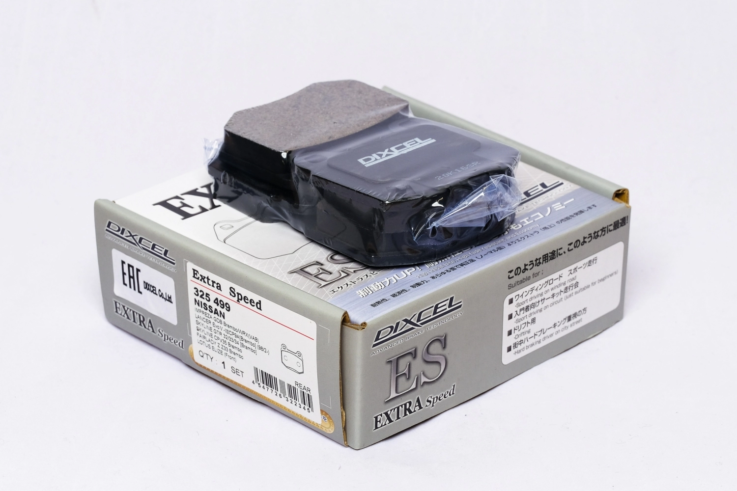 Тормозные колодки Dixcel ES 325 499 Задняя ось: Subaru Forester, Impreza (GD/GG Model) WRX STI, Impreza (GH/GR/GV Model), Legacy Sedan (B4), Legacy Touring Wagon / Nissan Fairlady Z, Skyline, Stagea / Mitsubishi Lancer Evolution.