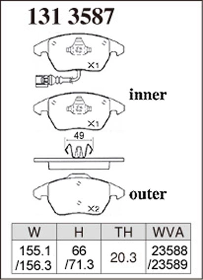 Применимость тормозных колодок P 131 3587 по данным японского каталога Dixcel