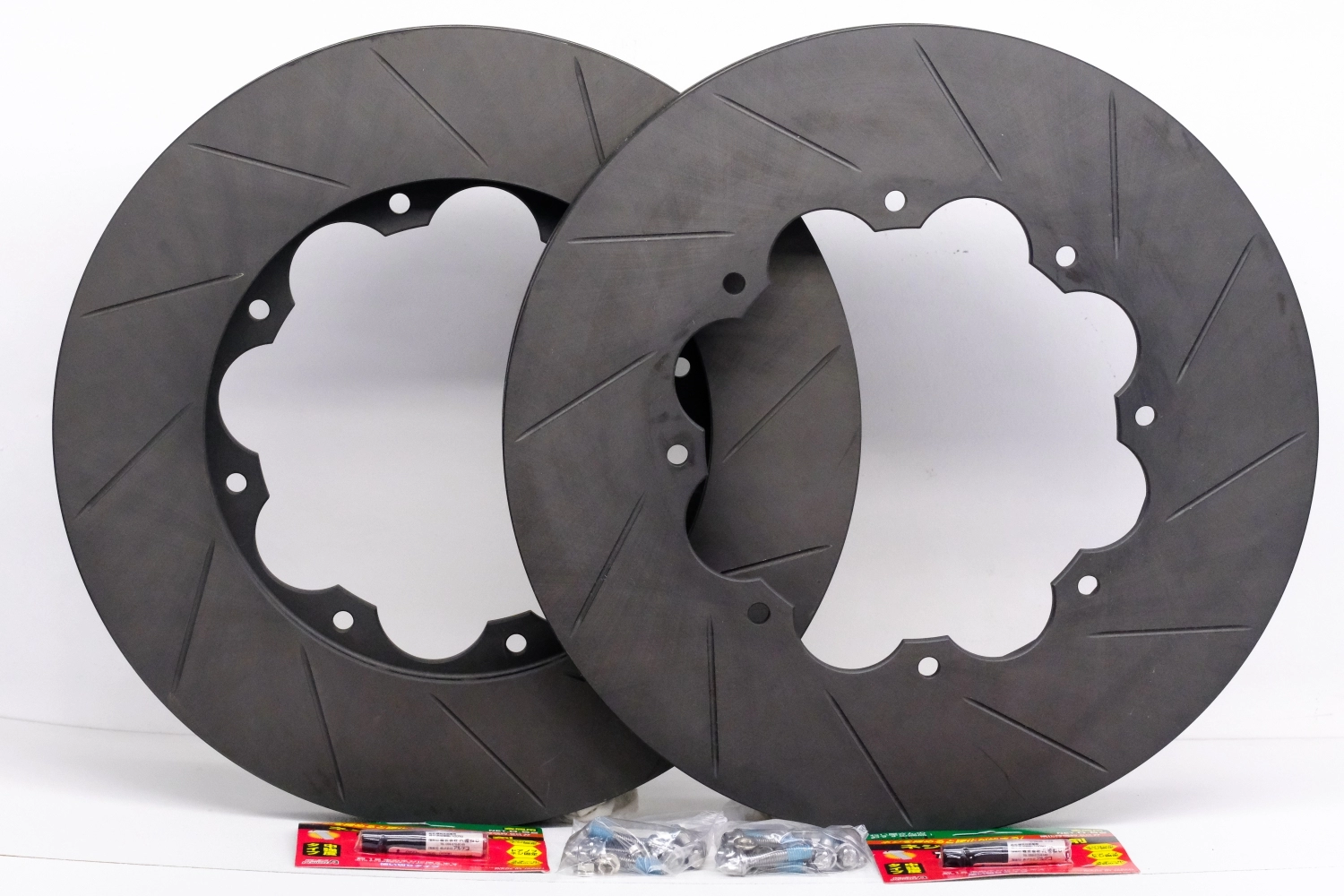 - Имеют по 12 направленных изогнутых насечек на кажой стороне диска. Правый и левый диски отличаются направлением слотов и каналов вентиляции.